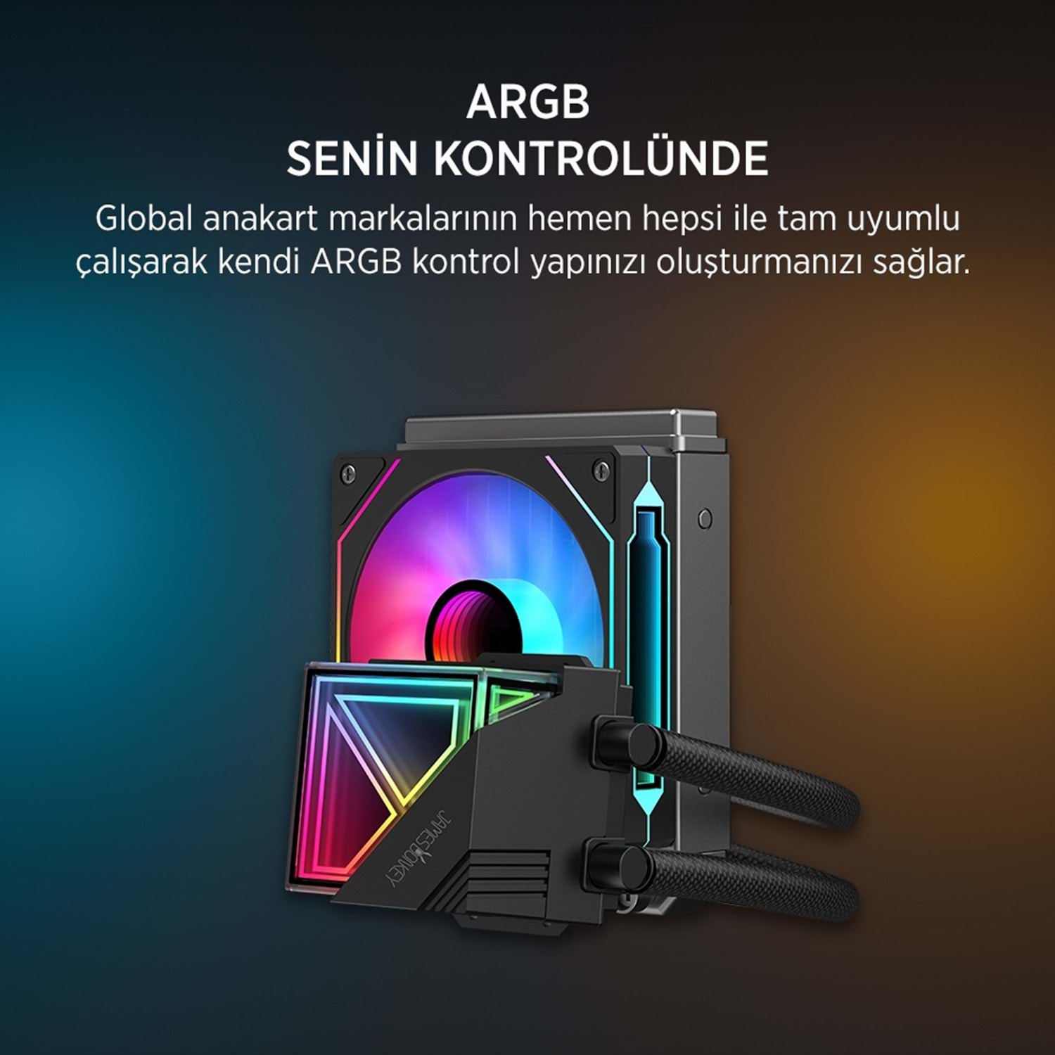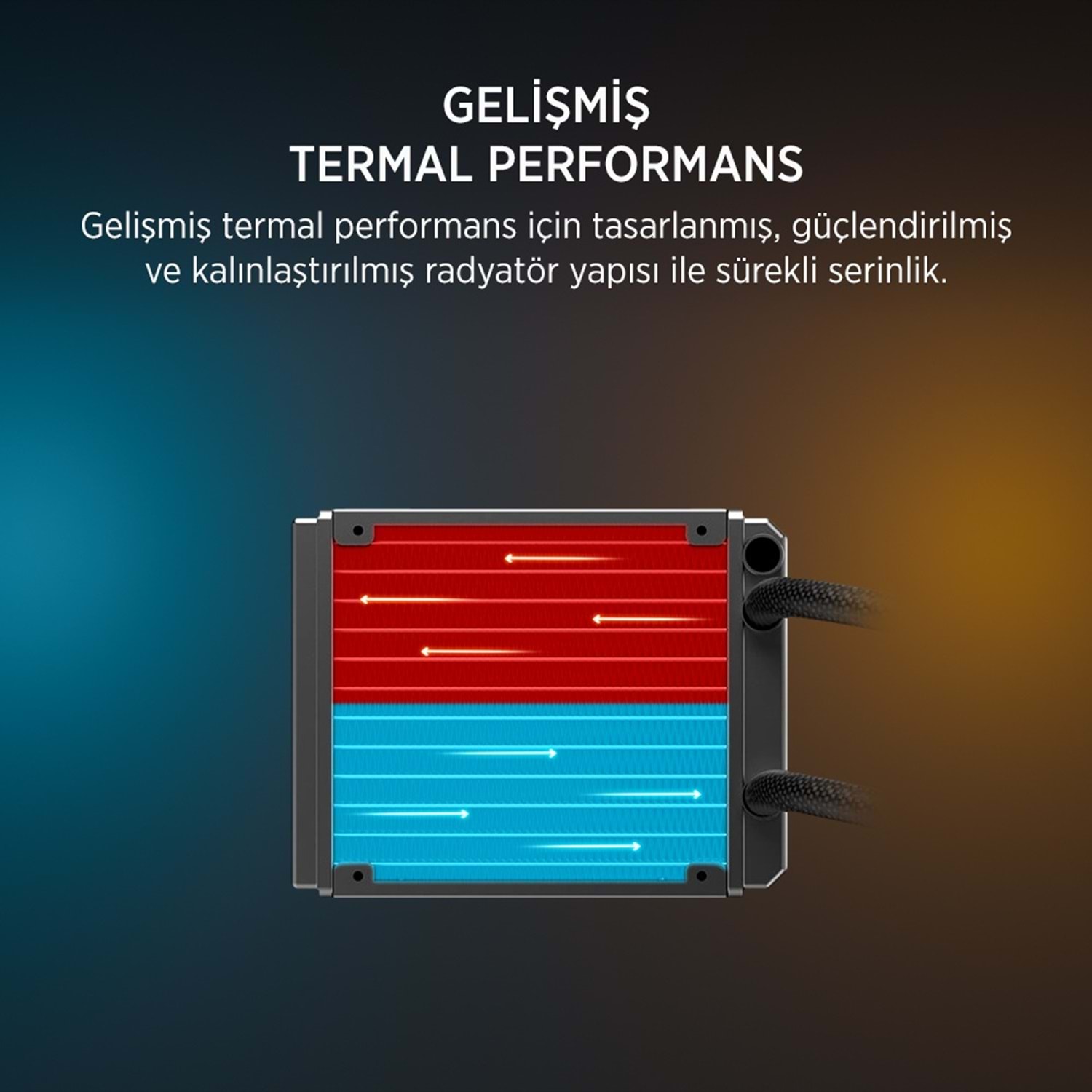 Göz kamaştıran sonsuzluk aynası efektiyle kasana derinlik katarken, yüksek devirli fanlar işlemcini serin tutar. Performansın ve estetiğin sınırlarını zorlayan bir sıvı soğutma deneyimi.