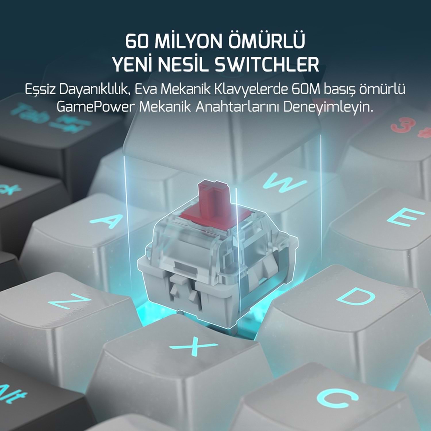 GamePower Eva 3 60M Mekanik Red Switch Türkçe Q 88 Tuş USB Gaming Klavye - 3 Yıl Garantili