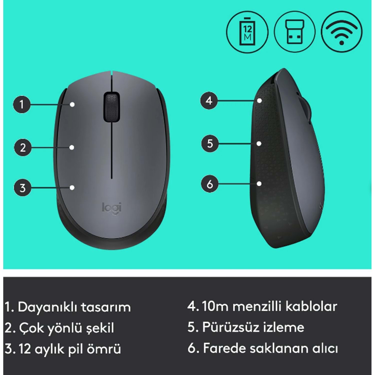 Logitech M170 USB Alıcılı Kablosuz Kompakt Mouse - Gri