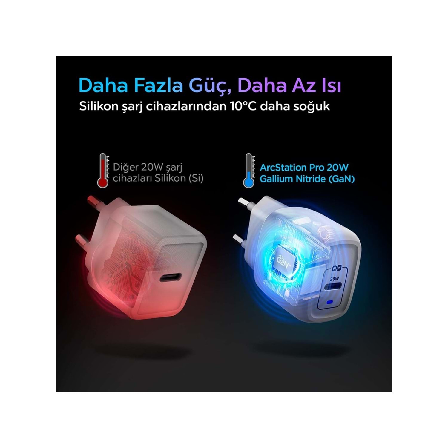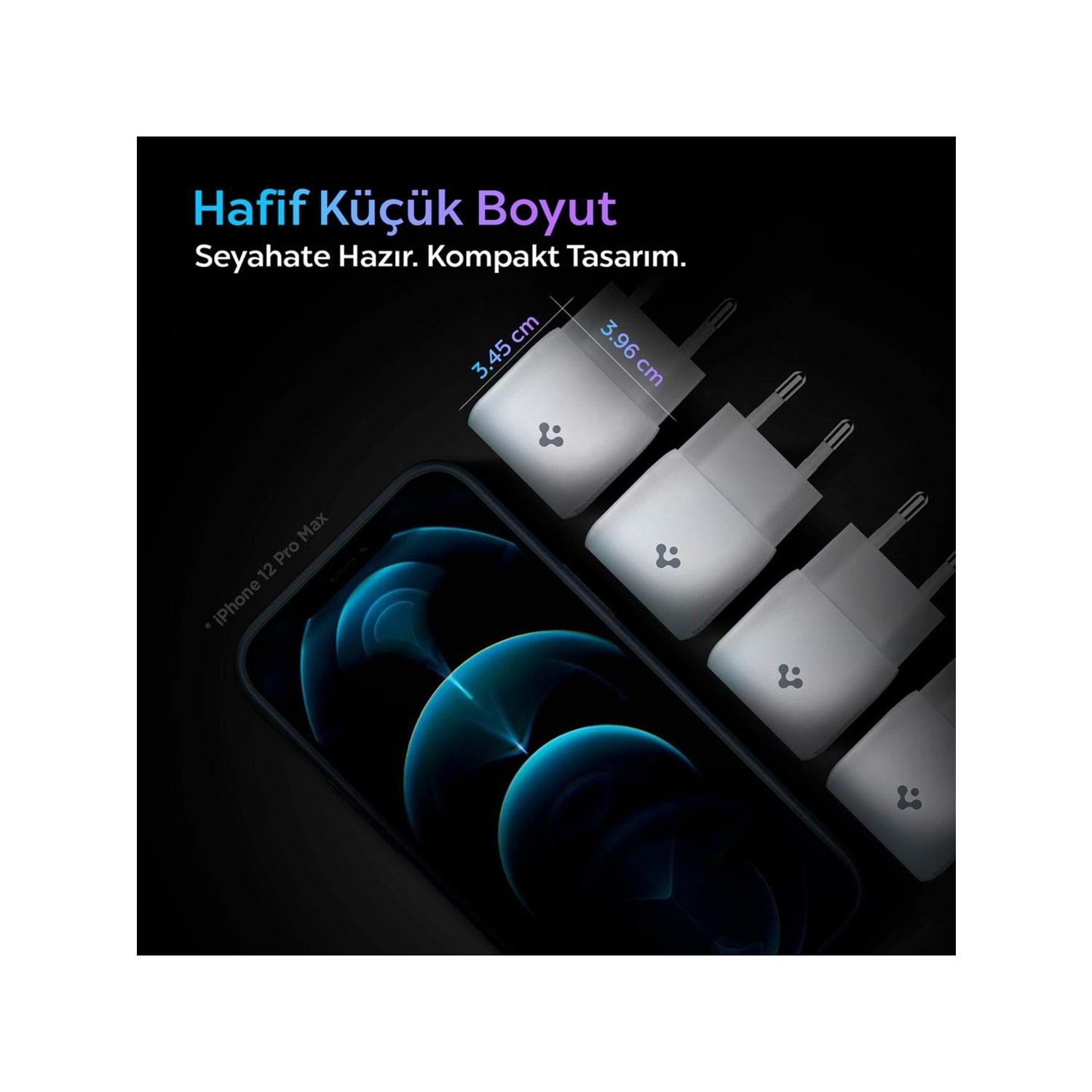 Spigen 20W USB-C Mini Hızlı Şarj Aleti/Şarj Isısını Düşürür GaN Destekli Akım Korumalı Güç Adaptörü iPhone & Android & iPad